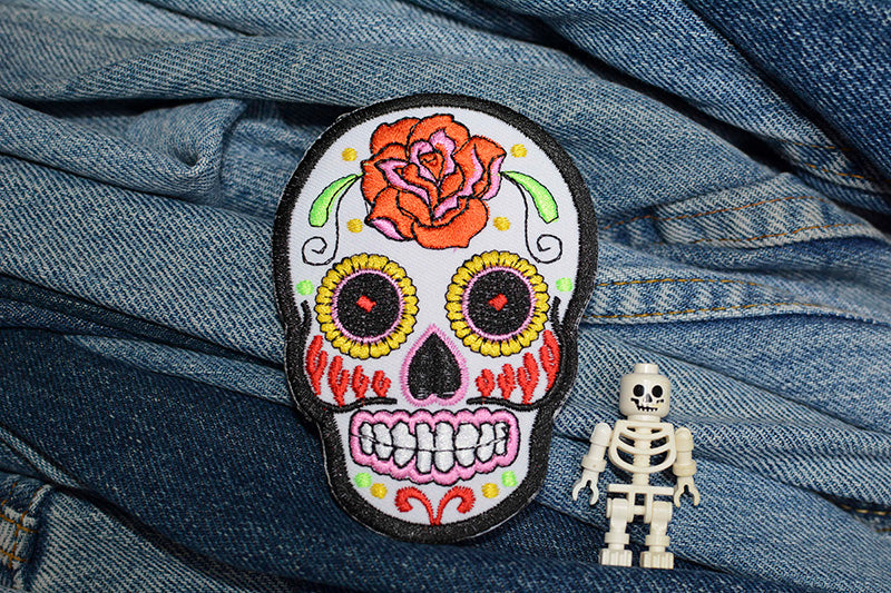 Patch thermocollant tête de mort mexicaine blanche 0098