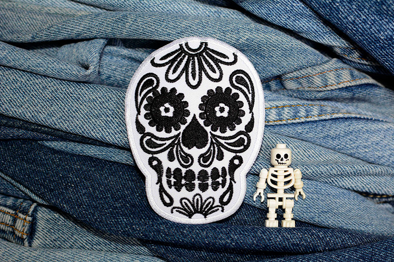 Patch thermocollant tête de mort mexicaine noir et blanc 0102
